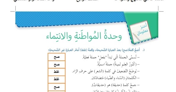 ورقة عمل وحدة المواطنة والانتماء اللغة العربية الصف الرابع