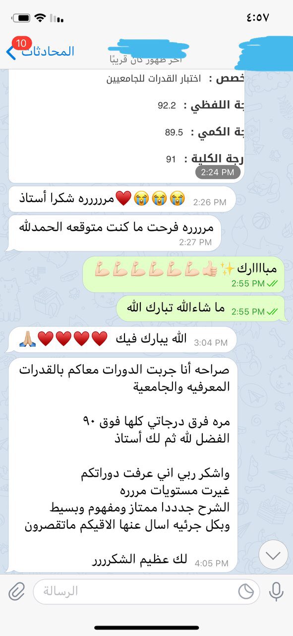 S A L E H قدرات صالح On Twitter ما شاءالله لا قوة إلا بالله متدربة في دوراتنا حققت درجة9 0 في القدرة المعرفية و قدرات الجامعيين للاستفسار والتسجيل واتساب