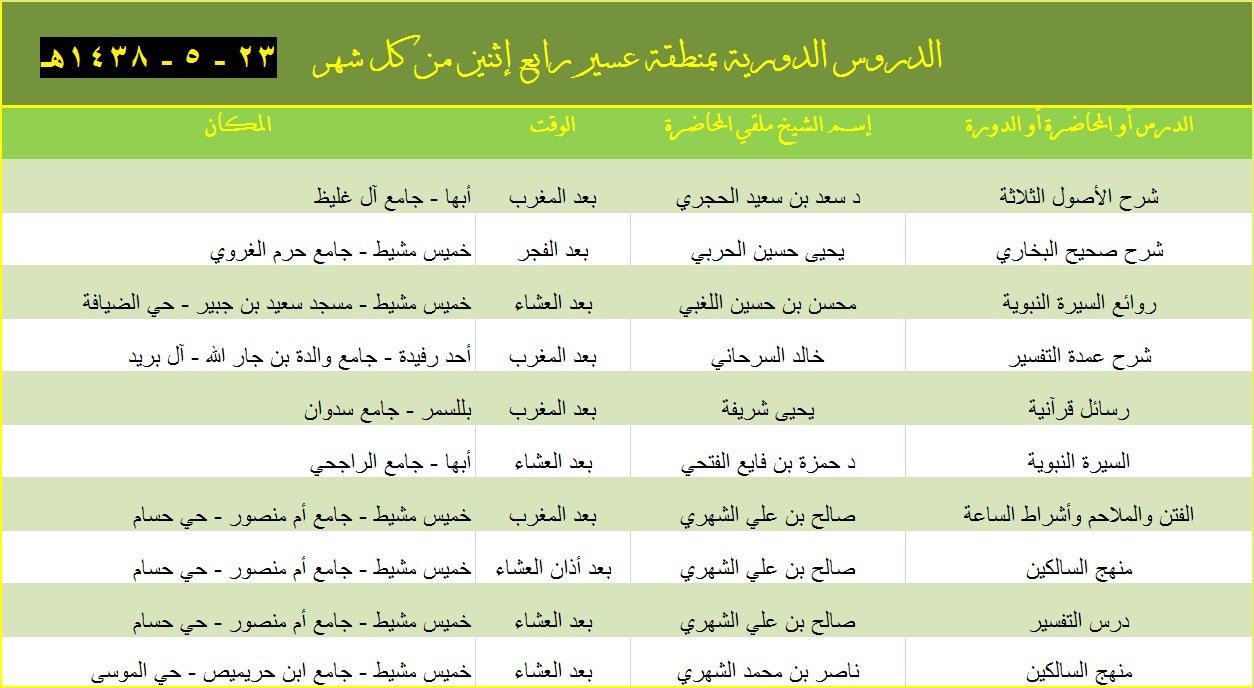 دروس منطقة عسير نعود بحذر Ar Twitter الدروس الدورية بعسير الأحد ١٥ ٣ ١٤٣٩ أبها تندحة خميس مشيط سراة عبيدة تنومة الحرجة النماص تثليث محايل عسير أحد رفيدة تفاصيل Https T Co Ptgv267qw2